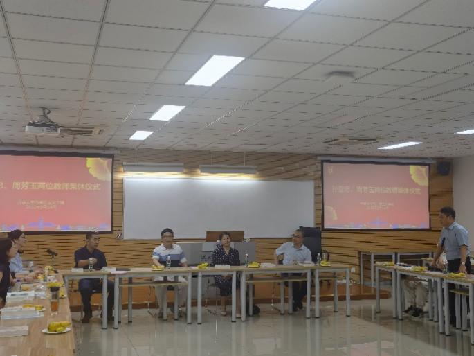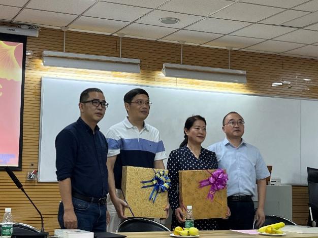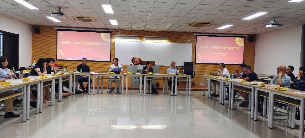 The golden autumn arrives in September. The School of Marxism at Nanjing University held a retirement celebration in honor of Prof. Sun Yazhong and Assoc. Prof. Zhou Fangyu, on September 14, 2022, at 3:00 pm. Over 50 people, including school leaders and all faculty members, participated in the event.