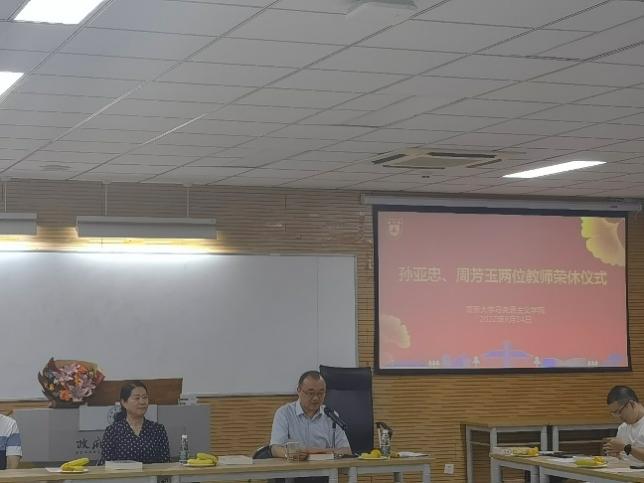 At last, Sun Yazhong and Zhou Fangyu shared their reflections. They looked back on their 40-year journey at Nanjing University and expressed gratitude for the solid foundation and support provided by NJU and the School for personal growth. Even in retirement, they will continue to keep up with the School’s progress. They emphasized that even though they have retired, their love for the School will never fade. They would like to support the School in any possible way and contribute more through practical efforts. The teacher representatives who attended the meeting also expressed their admiration for the retirees and said they will miss them dearly.
