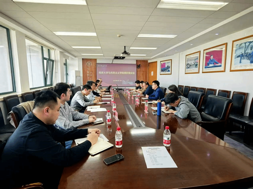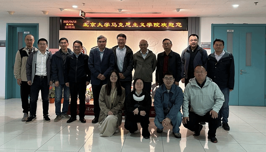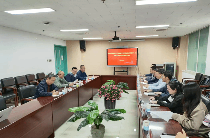 院长仰海峰、书记孙来斌、副院长陈培永、马克思主义基本原理研究所所长魏波、教师代表夏少光、《当代中国马克思主义研究》编辑部陈建琪出席会议。仰海峰院长首先代表北大马院对我教研室来访表示热烈欢迎,并详细介绍了北大马院的历史沿革、教学成果和人才培养等基本情况。随后,魏波所长重点介绍了北大马院马原理教研室的发展现状,分享了北大思政课以课程模块为中心的特色教学模式,并对马克思主义基本原理课程的未来改革方向进行了展望。双方教师进一步围绕本科生培养、马原理课程教学设计和思政课堂的课程管理等相关议题展开了卓有成效的讨论。