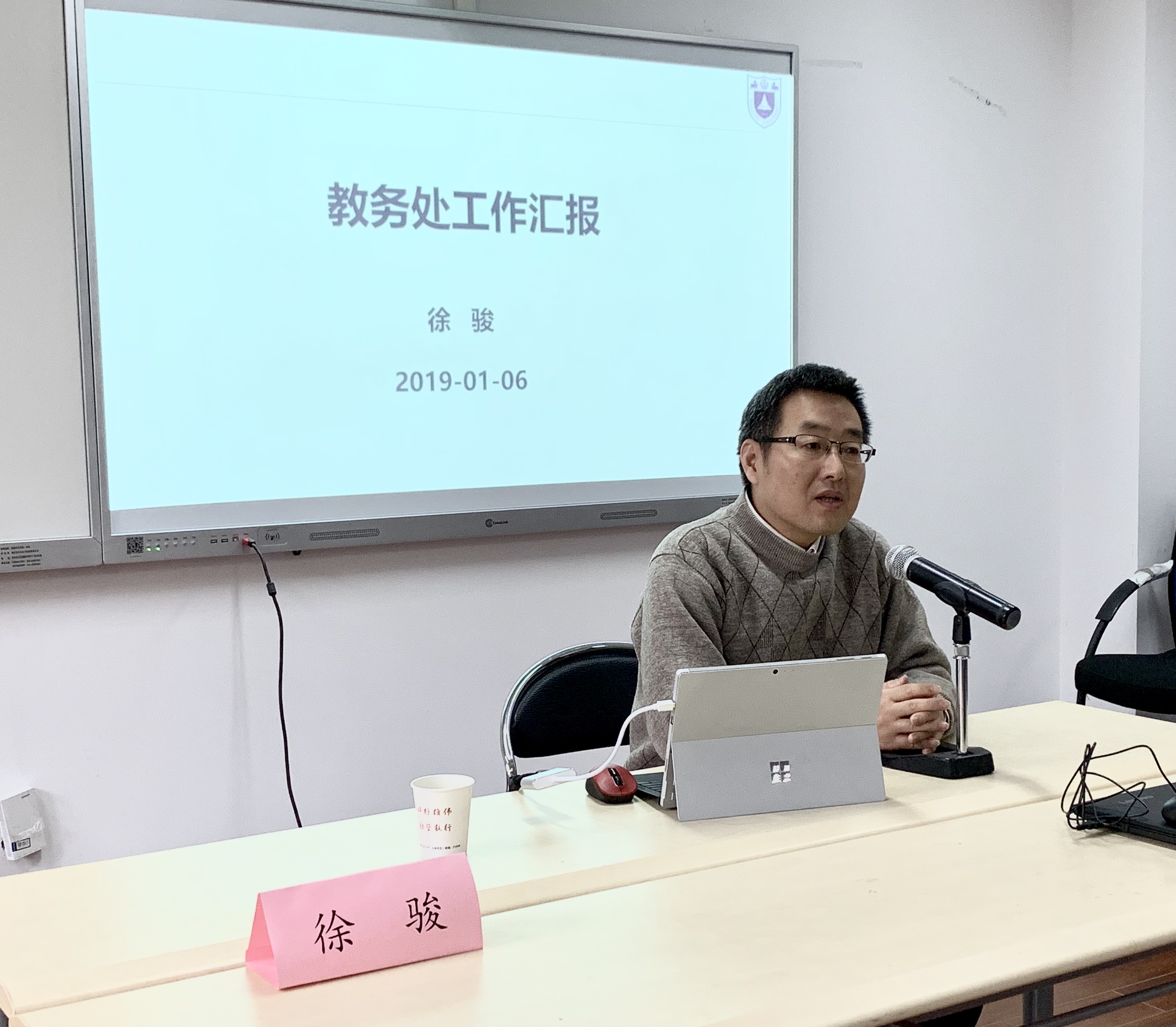 教务处处长徐俊、教务处科长沈志成对学校教学管理规定进行解读,教务处教师吕筠讲授PPT制作技能,cos色情