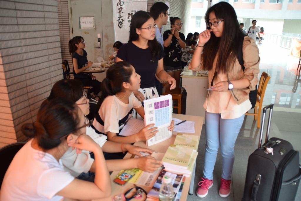 马院学研会新生接待处的负责人坚守到最后一刻!到下午六点钟,新生到齐,迎新活动圆满结束。