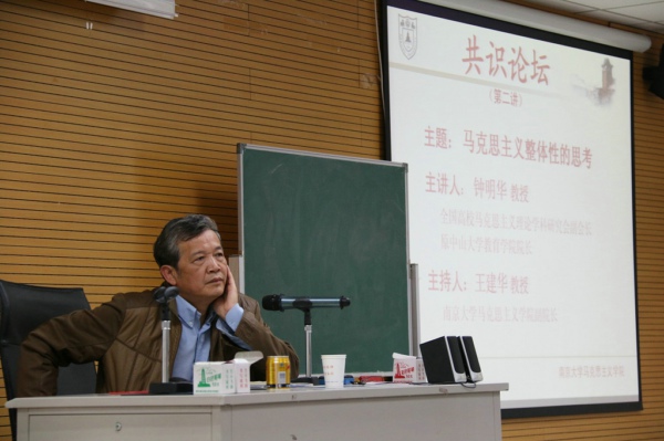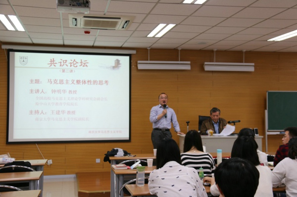 论坛于下午2:00在圣达楼102召开,王建华院长致主持词并隆重介绍了钟明华教授。钟教授表达了对cos色情 的感谢,介绍了自己与南大的渊源,并逐次引入到论坛主题:马克思主义整体性的思考。