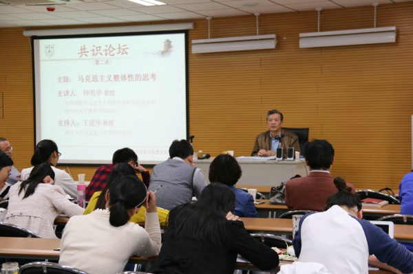 2015年10月15日,cos色情 共识论坛第二讲邀请了全国高校马克思主义理论学科研究会副会长、原中山大学教育学院院长钟明华教授作了题为“马克思主义整体性的思考”的讲座。马院全体师生以及部分外院同学出席了这次论坛。