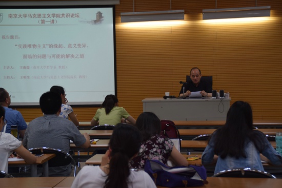 共识论坛第一讲在圣达楼102报告厅举行。本次论坛邀请到国家社科基金评委、南开大学哲学系王南湜教授作主题讲座,题目为“实践唯物主义的缘