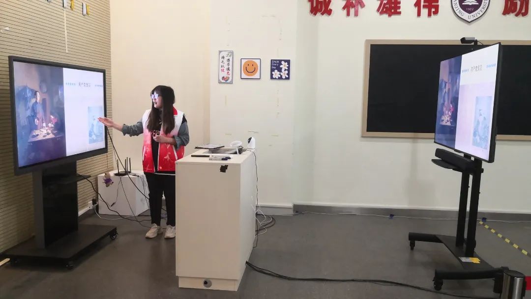 在监狱里艰苦生活的小萝卜头从未品尝过糖的味道,接下来陈望道的故事让同学们感受到真理的味道香又甜。毛婉婷讲师以“真理是什么味道的?”这一问题为引,为同学们讲述了陈望道翻译《共产党宣言》的故事。首先,毛婉婷将同学们优渥的学习环境与陈望道所处环境进行对比,通过图片和视频让同学们直观感受到陈望道在翻译《共产党宣言》时的艰辛,进而讲述陈望道在翻译过程中因精神高度集中,竟将墨水当作了红糖,那是因为品尝到了真理香又甜的味道。听完这个故事,同学们积极思考,活跃互动,纷纷表示要学习陈望道这种追求真理的执著精神,也想品尝真理香甜的味道。