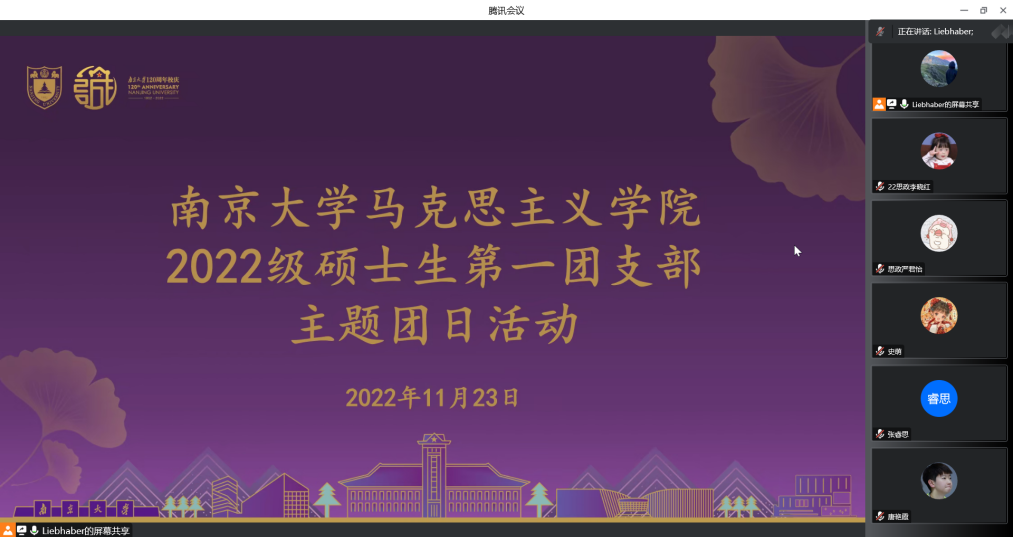 2022级硕士生第一团支部开展“共创碧水蓝天,守护人类家园”党的二十大精神专题学习活动。本次活动采用线上形式,2022级硕士生第一团支部副书记周甫森进行主持并做主题宣讲。