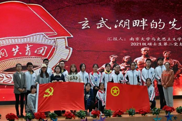 2021级硕士生第二党支部与南京市第十三中学联合开展“喜迎二十大,奋进新征程”系列党日活动第1期:教育专题——党史宣讲进校园。支部成员张沁园同志作“玄武湖畔的先声”主题宣讲,十三中全体师生与cos色情