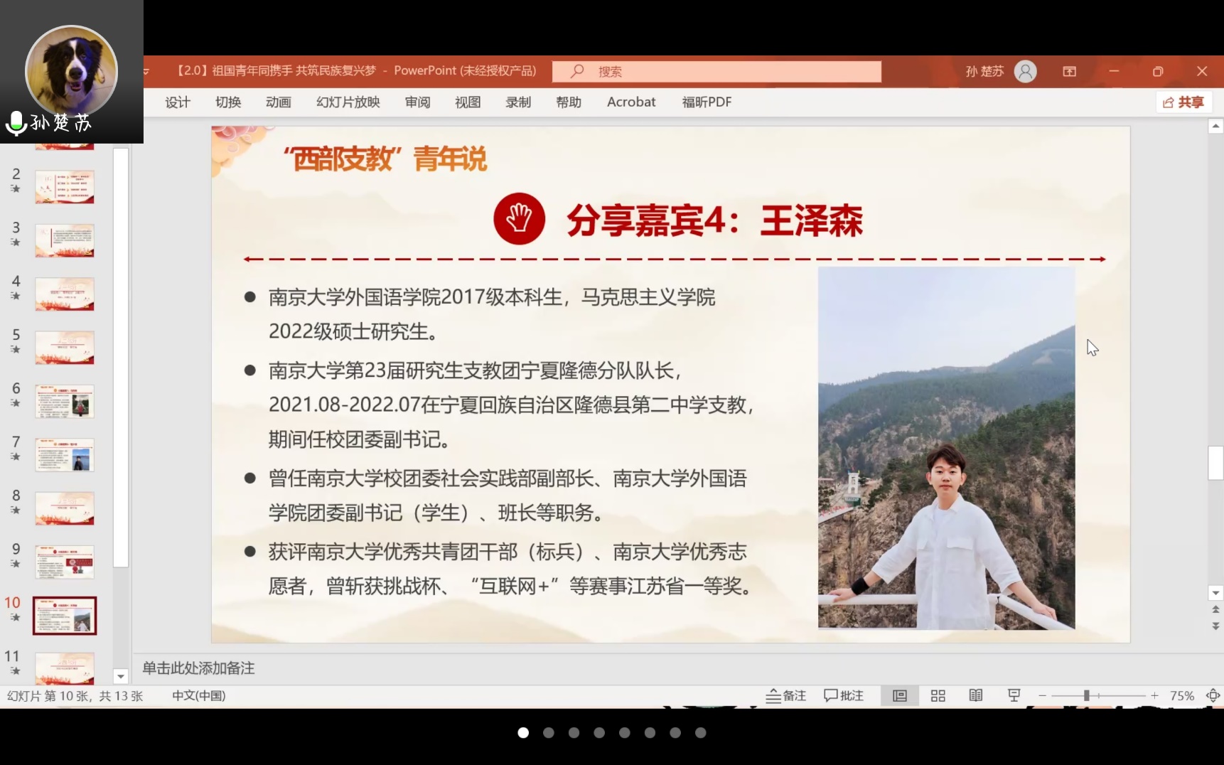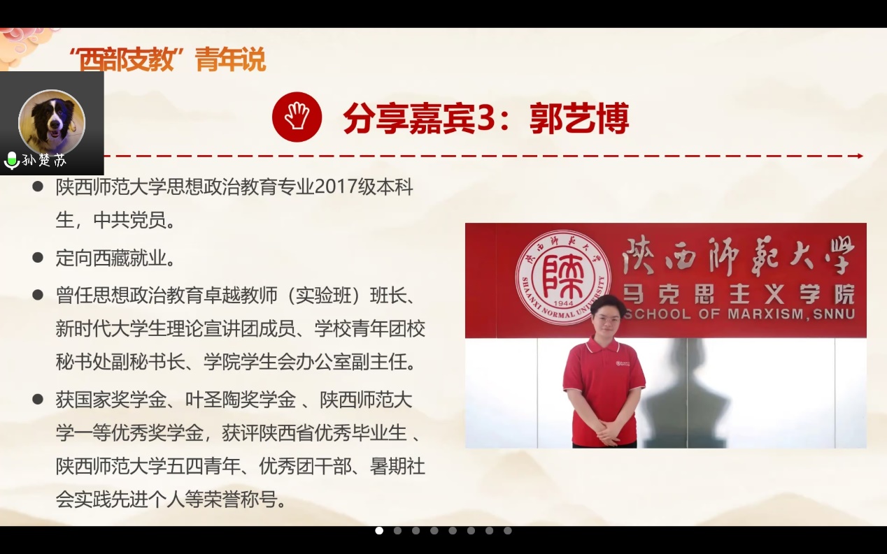 港台青年与内地青年同根同源,拥有共同记忆和相似的文化背景,在祖国更广阔的大地上,也有这样一群青年选择响应党和国家的号召,扎根西部,奉献自己。党日活动的第三部分由两位赴西藏和宁夏支教的同学分享他们的理想之路。陕西师范大学cos色情
