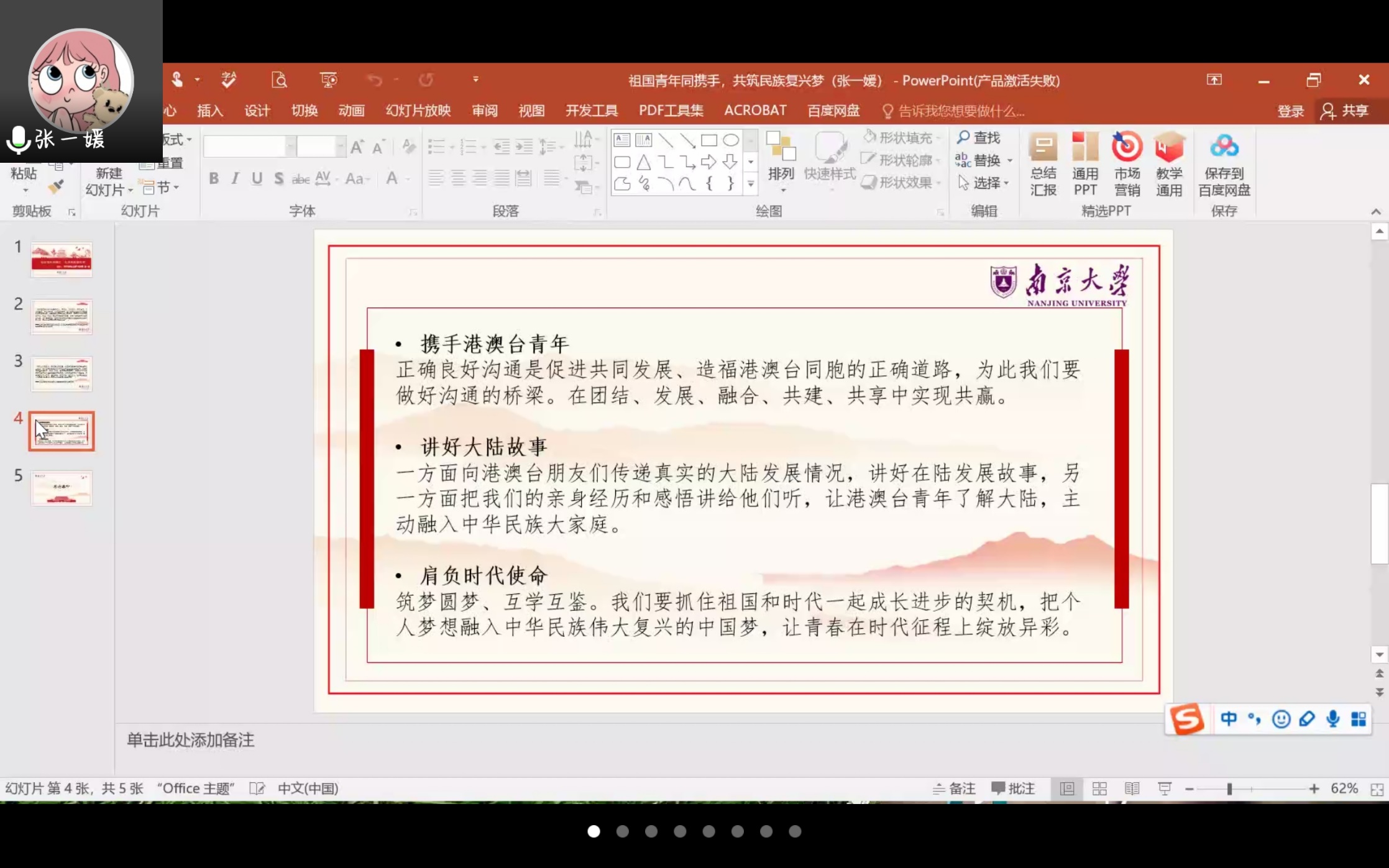 一、”祖国统一,青年担当“主题学习