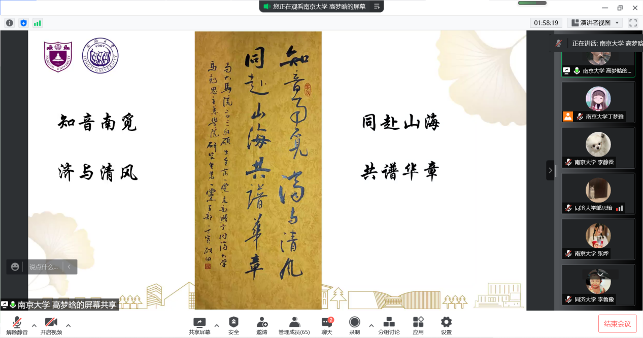 回首来路,两校始终走在中国高等教育前列,历经百年沧桑和岁月洗礼,百二十载桃李芬芳,百十五载弦歌不辍,始终与时代发展同频共振,与民族命运紧密相连。2022年是党的二十大召开之年,也是中国共产主义青年团成立100周年。新时代南大人和同济人更应该焕发新活力、发挥新作用,学习好党史校史,传承好校训校风,以扎实成绩迎接党的二十大胜利召开。