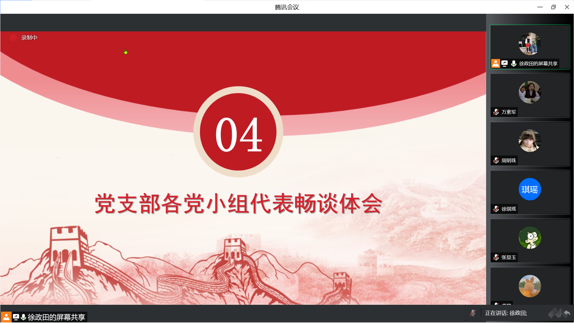 该环节,党支部成员们一同观看了由第二党小组拍摄的家书诵读视频,视频尚未播放完毕,就在支部群内收到了党支部成员们的热烈反响,大家纷纷表示,为认真制作的视频和一封封情真意切的家书所感动。