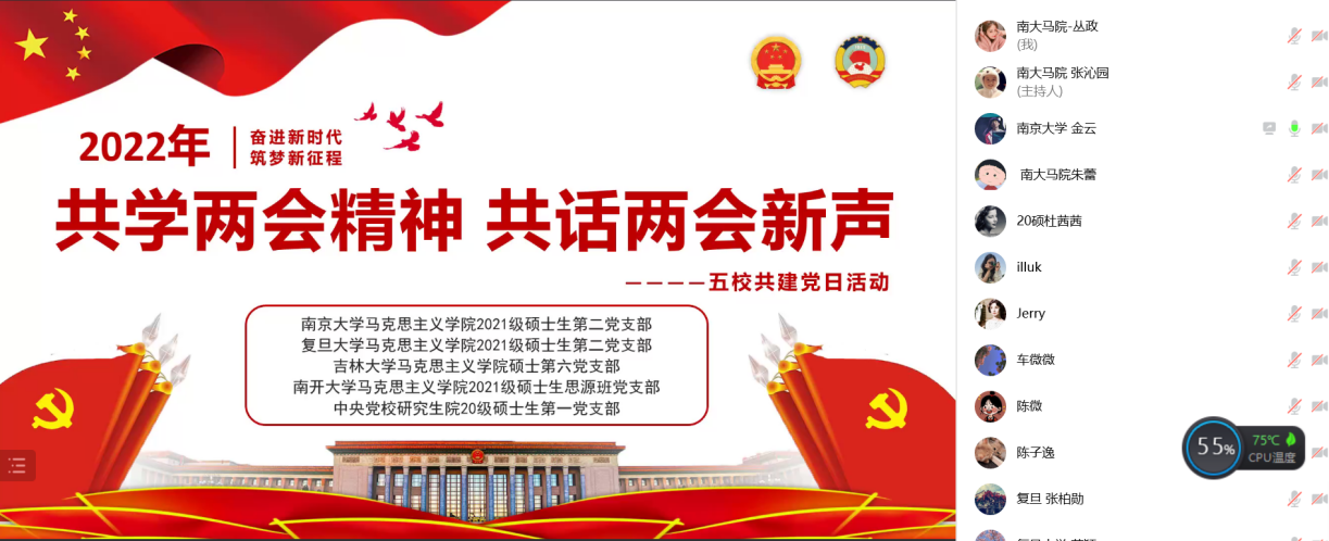2021级硕士生思源班党支部、中央党校研究生院20级硕士生第一党支部开展“共学两会精神 共话两会新声“——五校共建党日活动,活动由cos色情