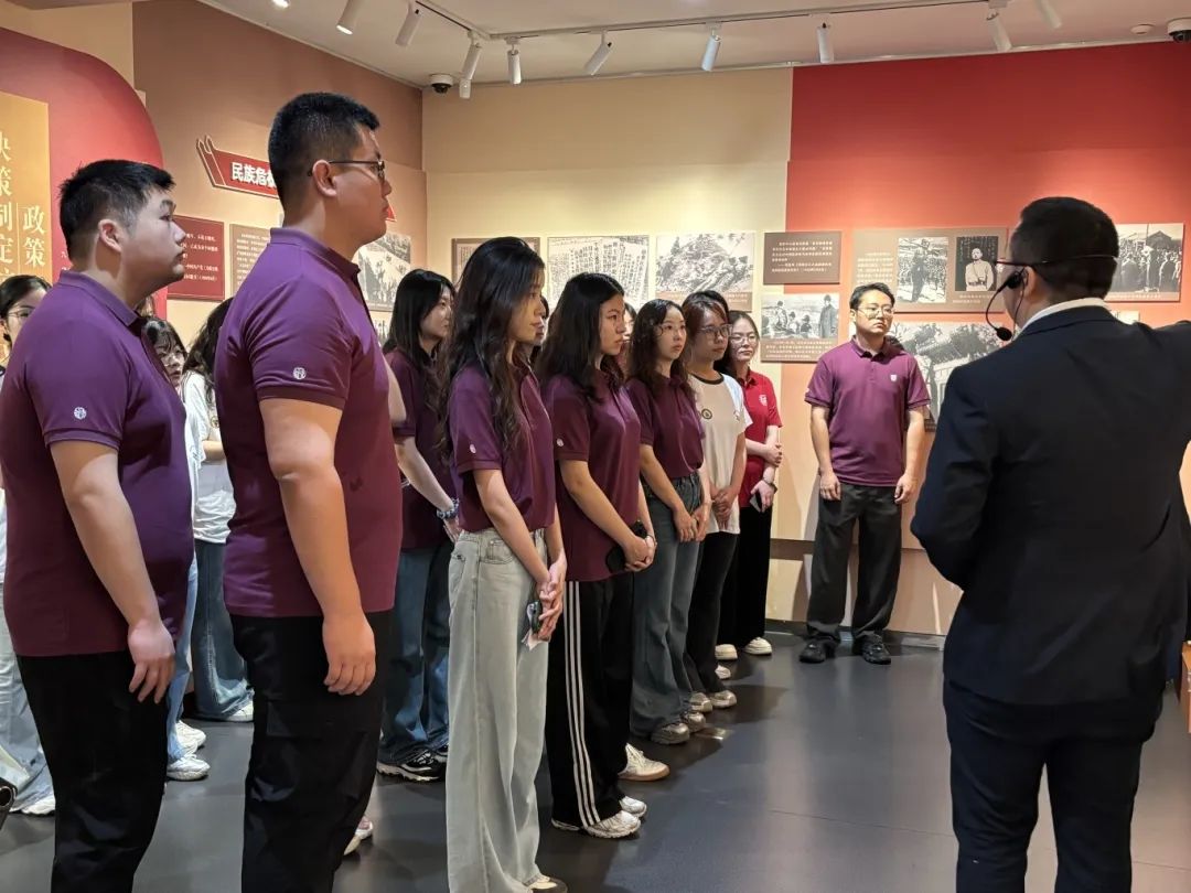 步入馆内,斑驳的手稿、泛黄的照片,生动再现了以周恩来为代表的革命先辈在抗战时期秉持民族大义,建立、巩固和发展抗日民族统一战线的光辉历程,彰显了党的中流砥柱作用。在讲解员引导下,师生们驻足于复原场景前,聆听感人故事,深刻领悟“为中华之崛起而读书”的誓言与共产党人“革命理想高于天”的坚定信念。